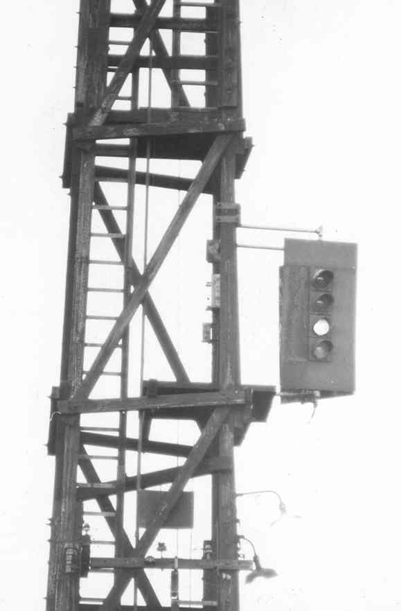 It is at the East end of Dunn Yard on the Arrival tracks and is for inbound road trains when they are shoving into the yard. The lights are used to protect the shove without having to have a man on the point of the shove or someone at the west-end watching the shove. If you look closely at each signal you will see 4 lights. Each light represents 4 car lengths. AAR specifications for a car length is 60ft. When the track is clear at the west-end all 4 lights will be on. Altho this doesn't mean that the track is clear it indicates that there is 16 car lengths open at the west end of the track. When a train shoves westward into the track, as the hind car hits the first circuit, 1 light will turn off, indicating that there are 12 car lengths to a stop. As the train keeps shoving and crosses the 2nd circuit, light 2 turns off indicating 8 car lengths left to a stop. Same for the 3rd circuit. When the 4th light turns off, the train stops.