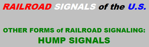 Hump Signals control the movements of trains in the yard, mostly when the trains are shoving into the yard. Some yards have an actual hump, like Bailey Yard (UP/North Platte NE), Argentine Yard (BNSF/Kansas City MO), or Conway Yard (NS/Pittsburgh PA), while others, like the former Western Maryland yard in Hagerstown MD, are flat and they would make up trains without the use of gravity.