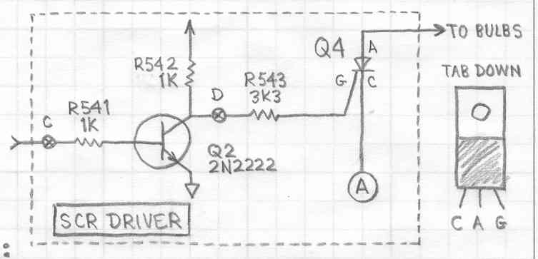 Q4* SCR or TRIAC -- rated for at least 5 or 6 amps / 50 volts (rs 276-1067 (scr/$1))(rs 276-1000 (triac/$1.50))