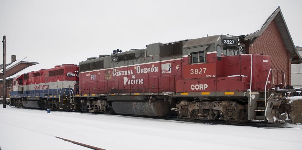 Rail America CORP 3827 and TPW 3878 at Kokomo IN in December 2010