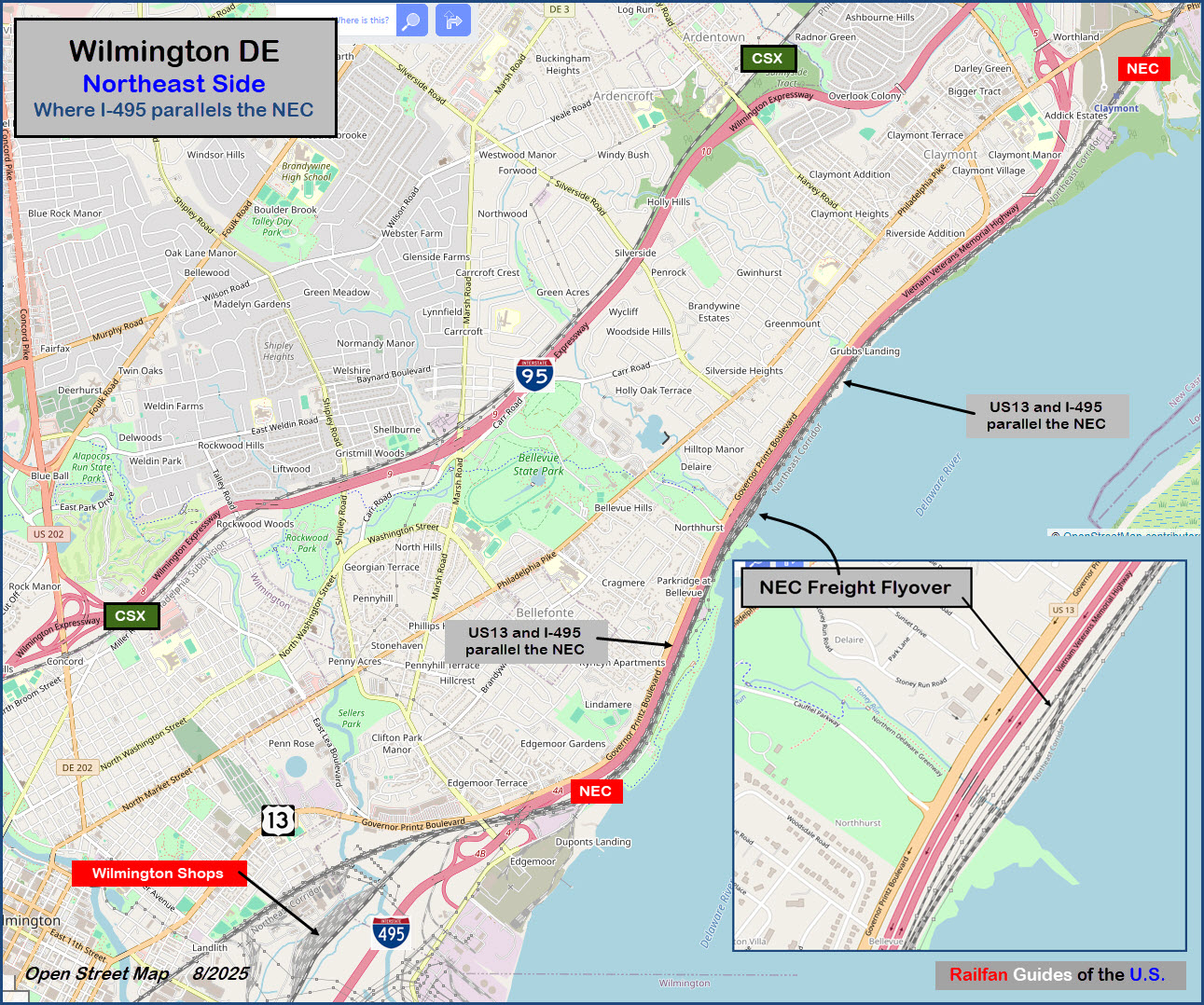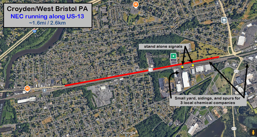 For a short while, US-13 parallels the North East Corridor for about 1.6