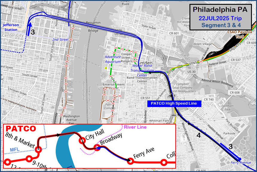 Segment 3 & 4 - PATCO: 8th St to Ferry St, then back to Broadway