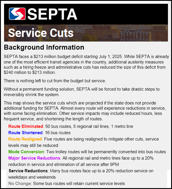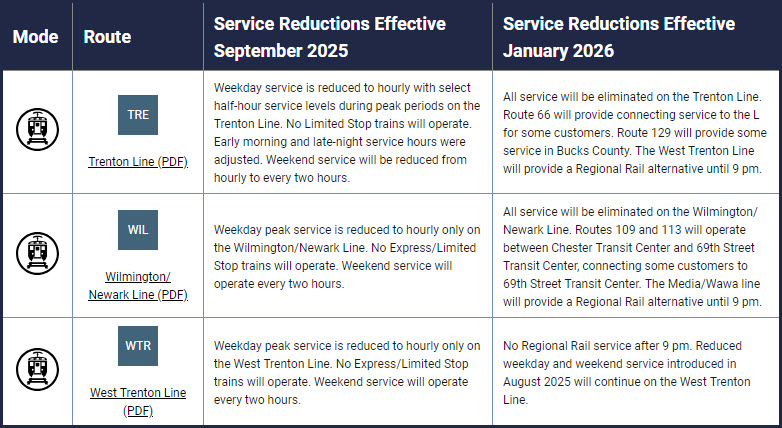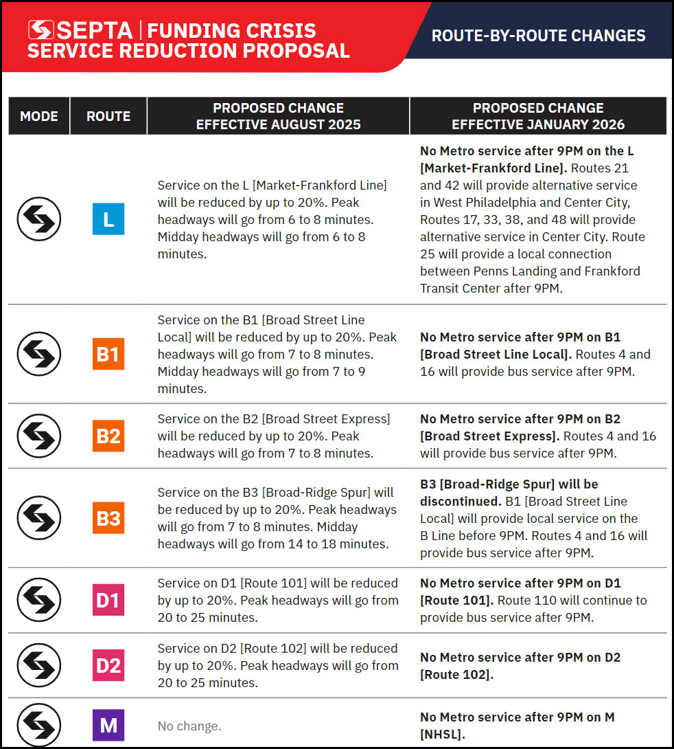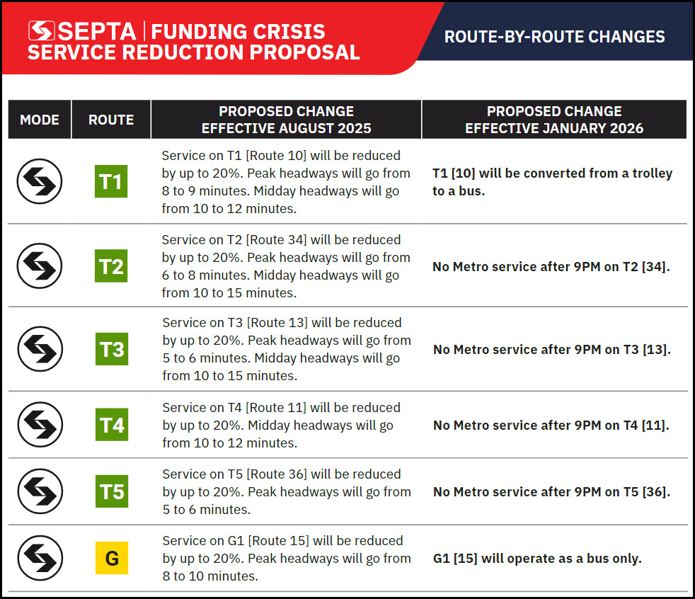 As of Thursday 4SEP25, a court ruled that SEPTA can not implement the reductions in service.