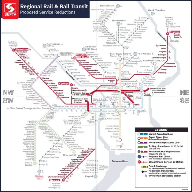 - Five Regional Rail lines will be discontinued, including the Trenton and Wilmington Lines.