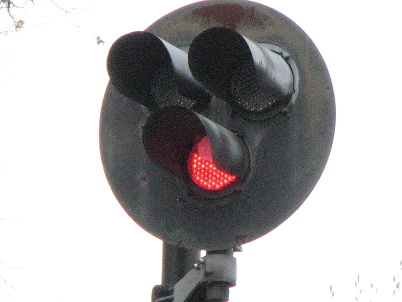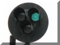 I dunno, we mighta missed another Pennsy signals, but the next bridge we saw thru the trees was a set of "tri-lights" illuminated with LED's!!! Getting to them was tough, had to do some hiking. This set of 3 signals is for NB traffic before the tracks go from 4 to 2 to cross over the Susquehanna. A little north of there are 2 single pole mounted US&S "tri-lights" for SB trains coming off the Susquehanna bridge (also with LED's). You can clearly see the LED's in the photos below.