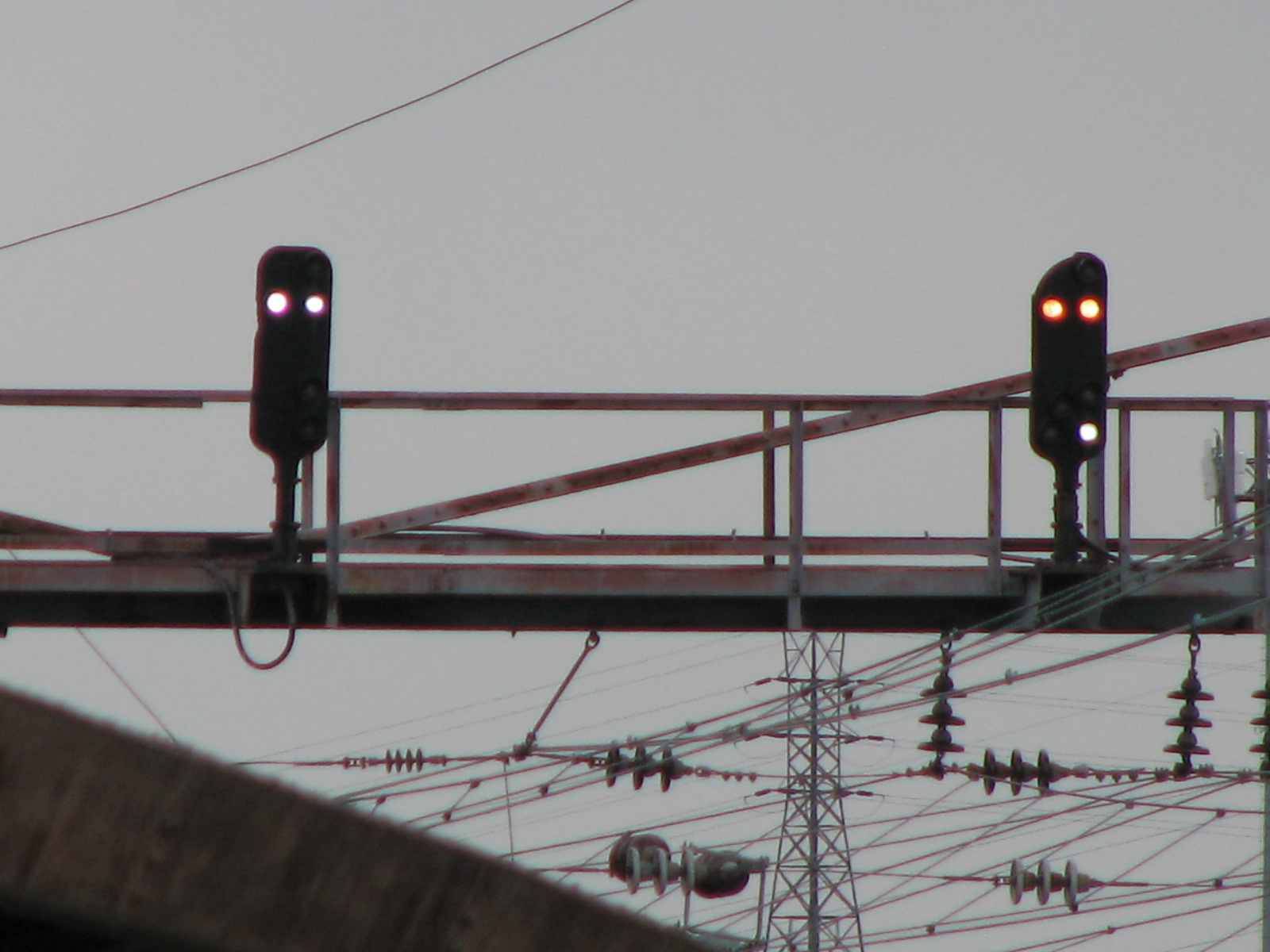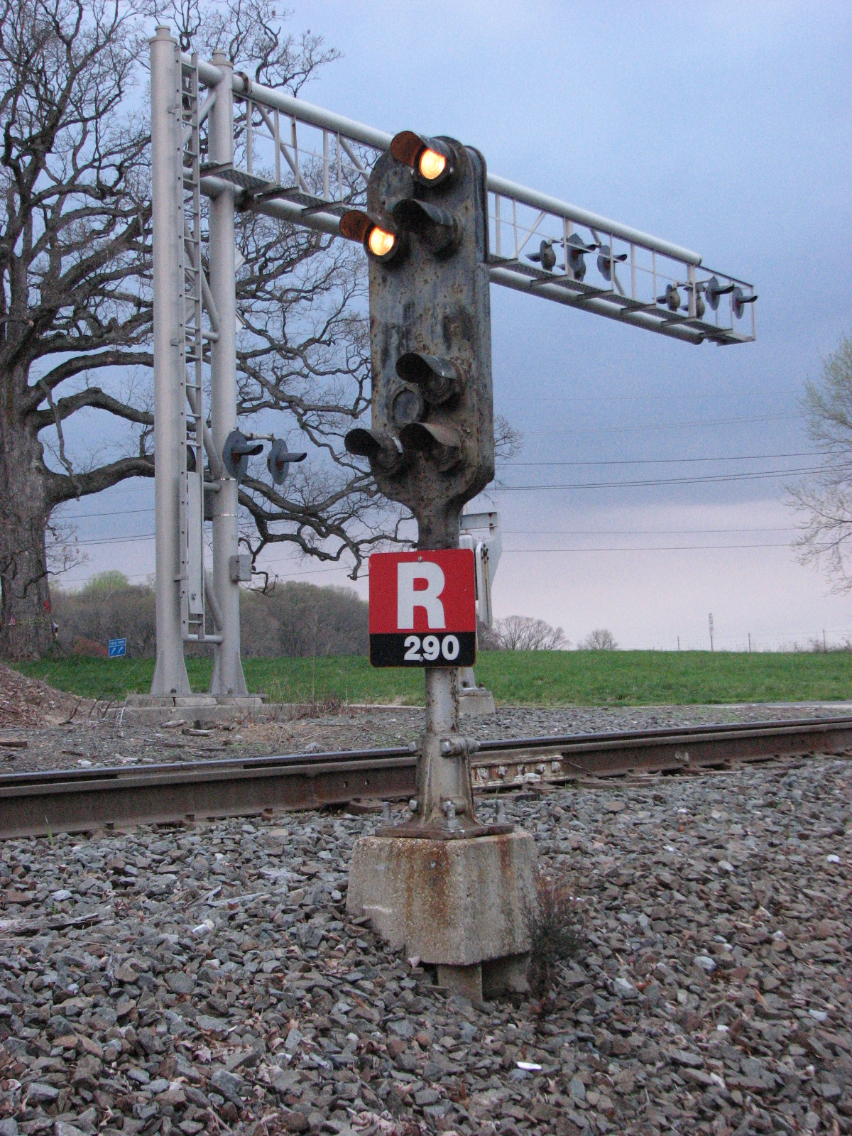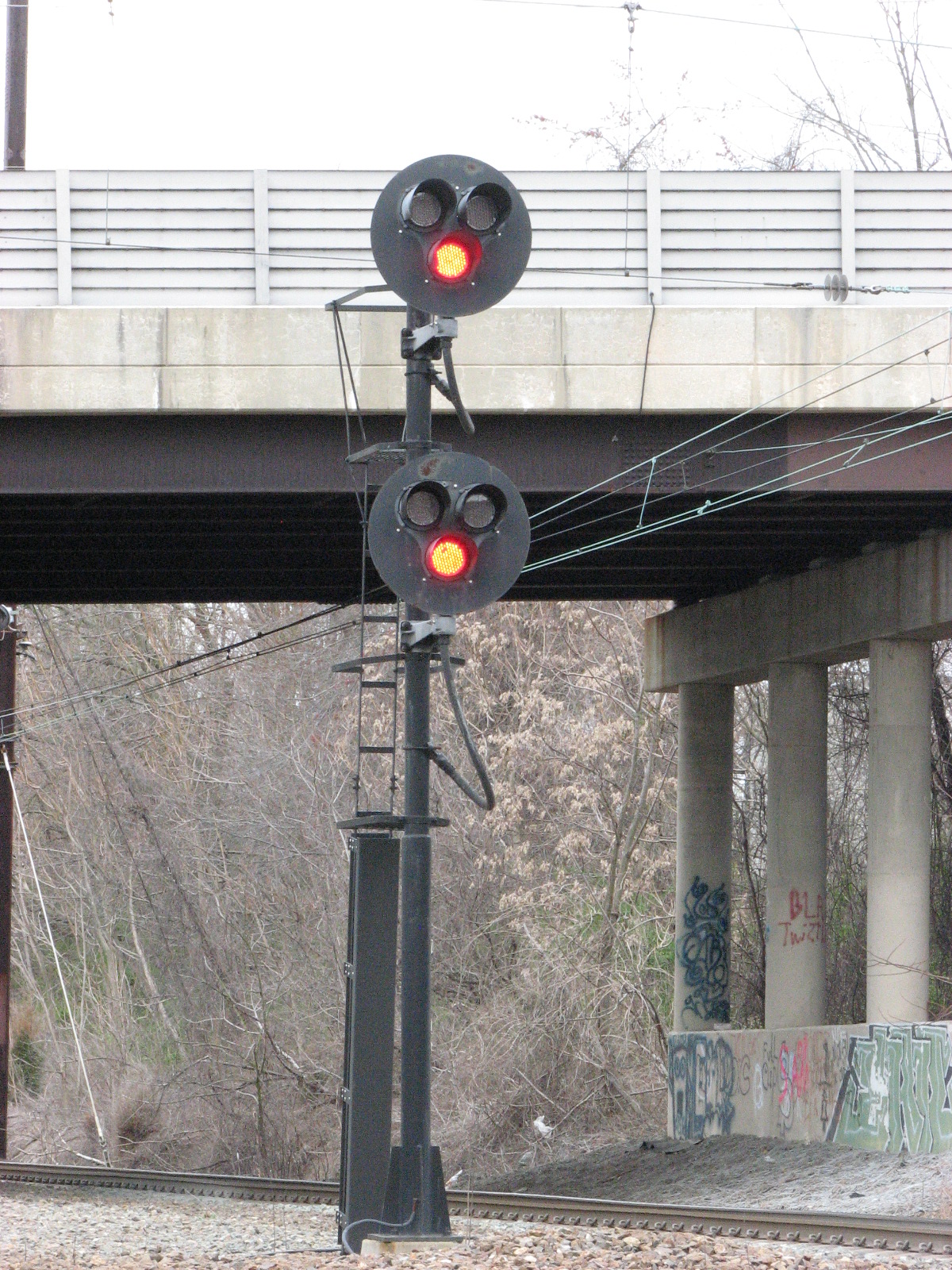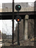 With the very last snippets of light, we went up to "Davis" interlocking and got shots of the signal bridge there, along with two dwarfs, one on a 7ft pole, as two were at Perryville.