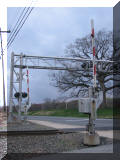 We scooted up Rt 40 to the next set of Pennsy signals. The tracks have been a little realigned, so a new cantilever bridge was installed, and there is a NB and SB bridge since there are a couple of crossovers. The southern NB bridge has 3 signals, the northern SB bridge has 2 signals, and the cantilever bridge has a single SB signal for the realigned track.