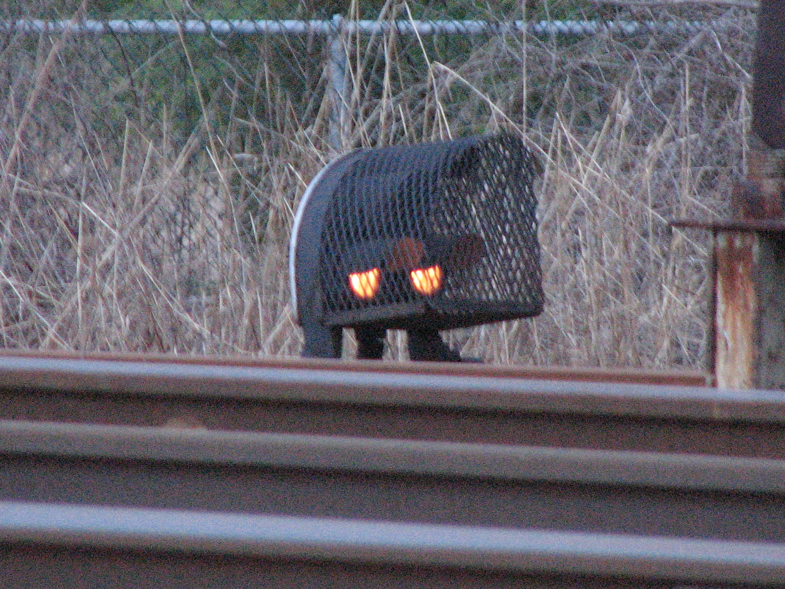 It was getting pretty dark, so we headed down to Newark in the last shreds of light to catch the pedestal Hank Sundermeyer put us on to. As luck would have it, there were also four pedestrian crossing gates there too.