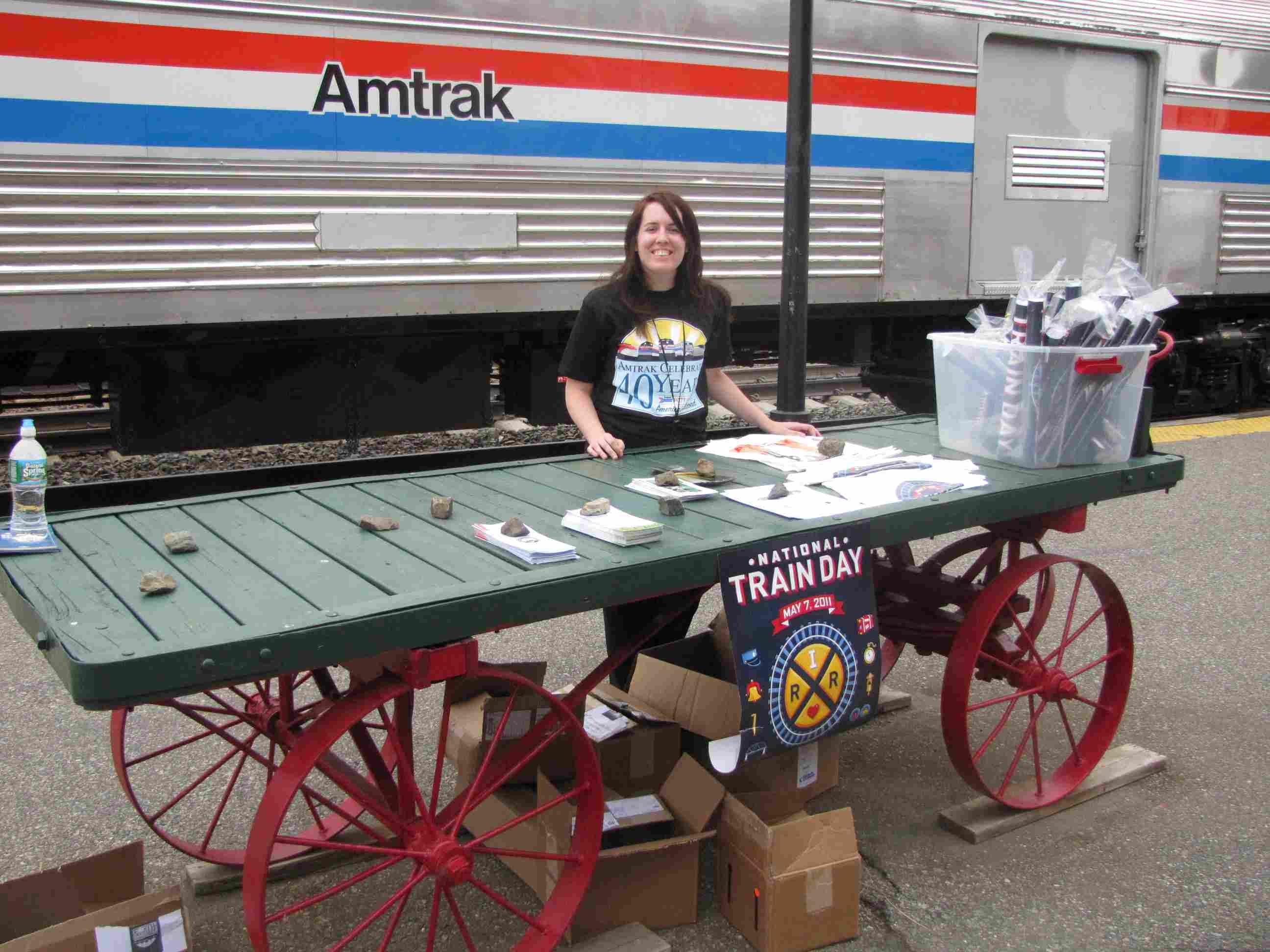 Amtrak freebies were being handed out outside.