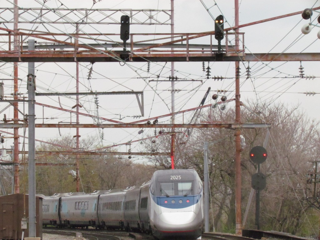 Wilmington marks the last of 10 places the train appeared "under the wire", and one of 10 places on the NEC. Grand Central Station is not technically under wire, and Harrisburg is not on the NEC but is under wire.