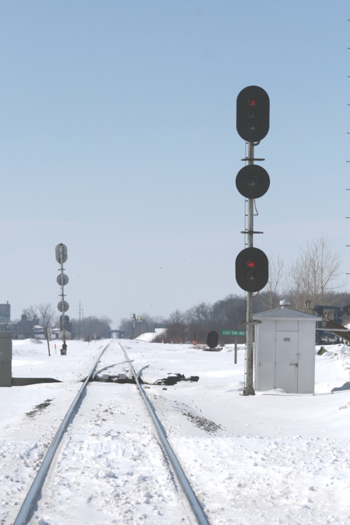 A couple of outbound signals at the east end of SK yard in Buffalo NY
