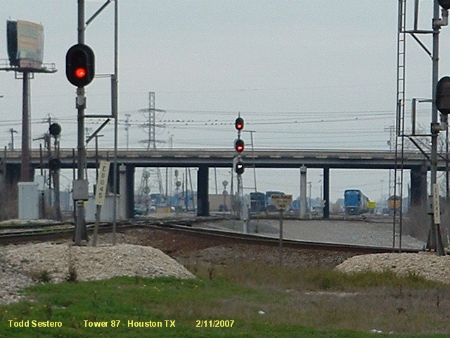 the north end of the bridge going over to Galveston Island, shared by BNSF (ex
