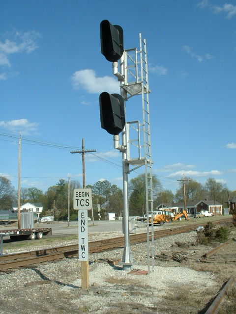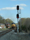 This WB/SB color light signal is located adjacent to the station in Salisbury, just down the road a ways from the Spencer Shops Museum. The signal is GRS, the base is by Modern Industries.