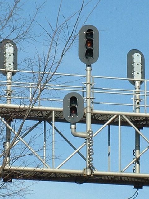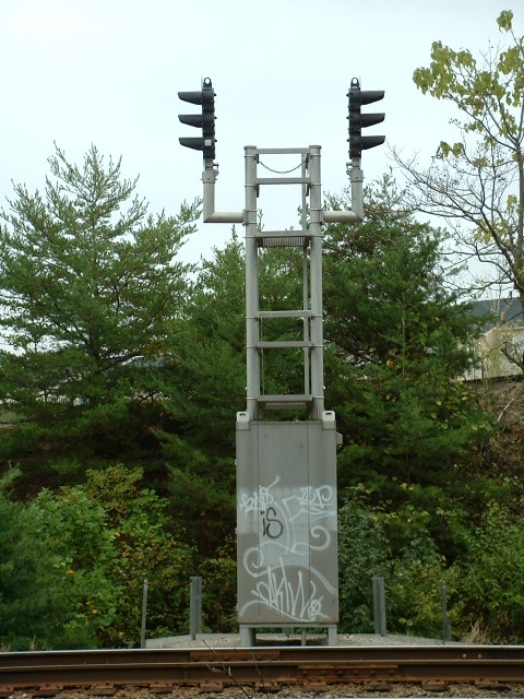 Well entrenched in what used to be hardcore B&O CPL territory is this fairly new colorlight installation at the ex B&O station, now used by MARC. Note that red occupies the second position up, as contrasted by the 4 aspect signal in Doswell, shown above.