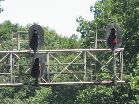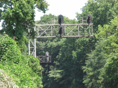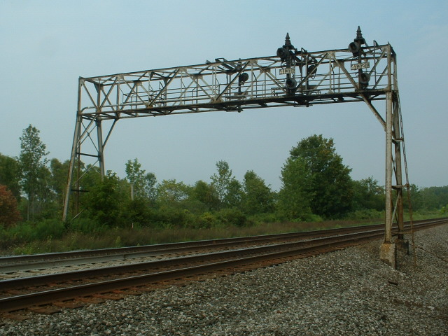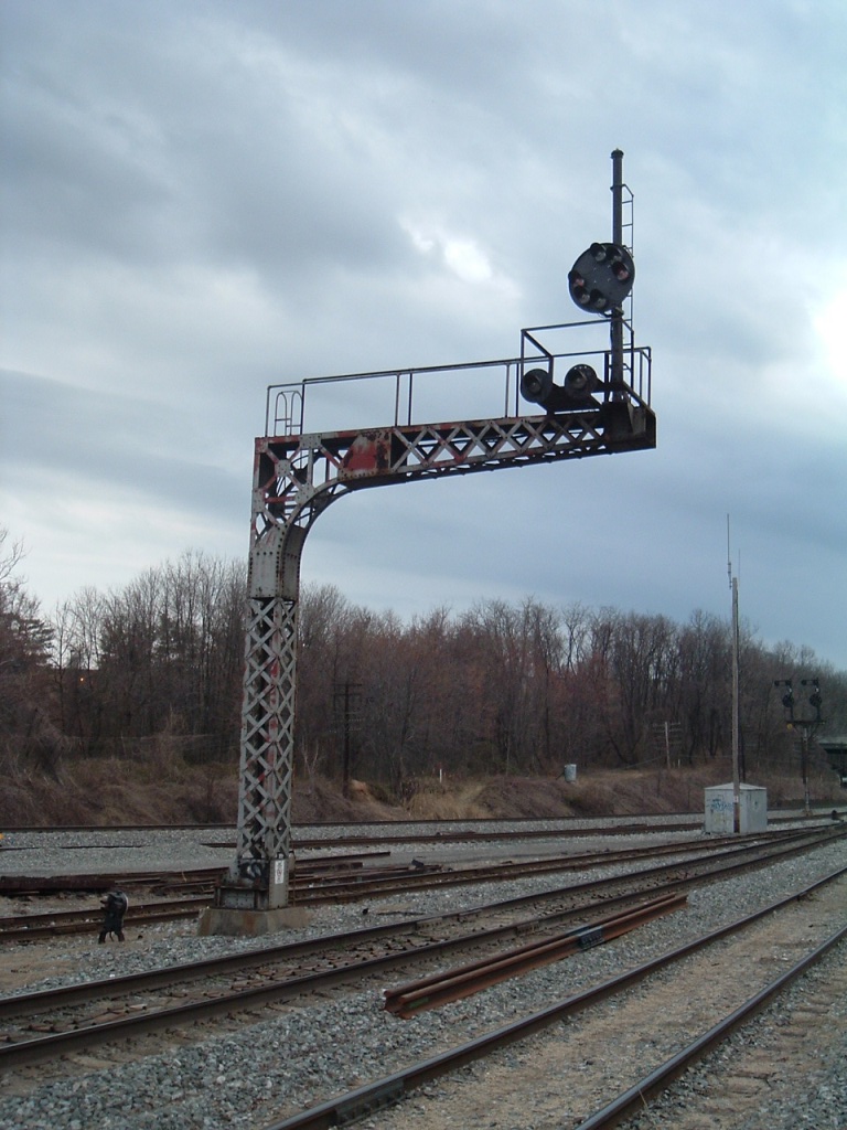 A classic cantilever signal bridge on the ex C&O Rwy in