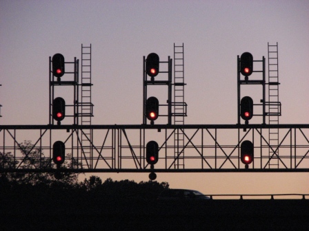 lighting, as only one of the four heads on the cantilever bridges is lit.