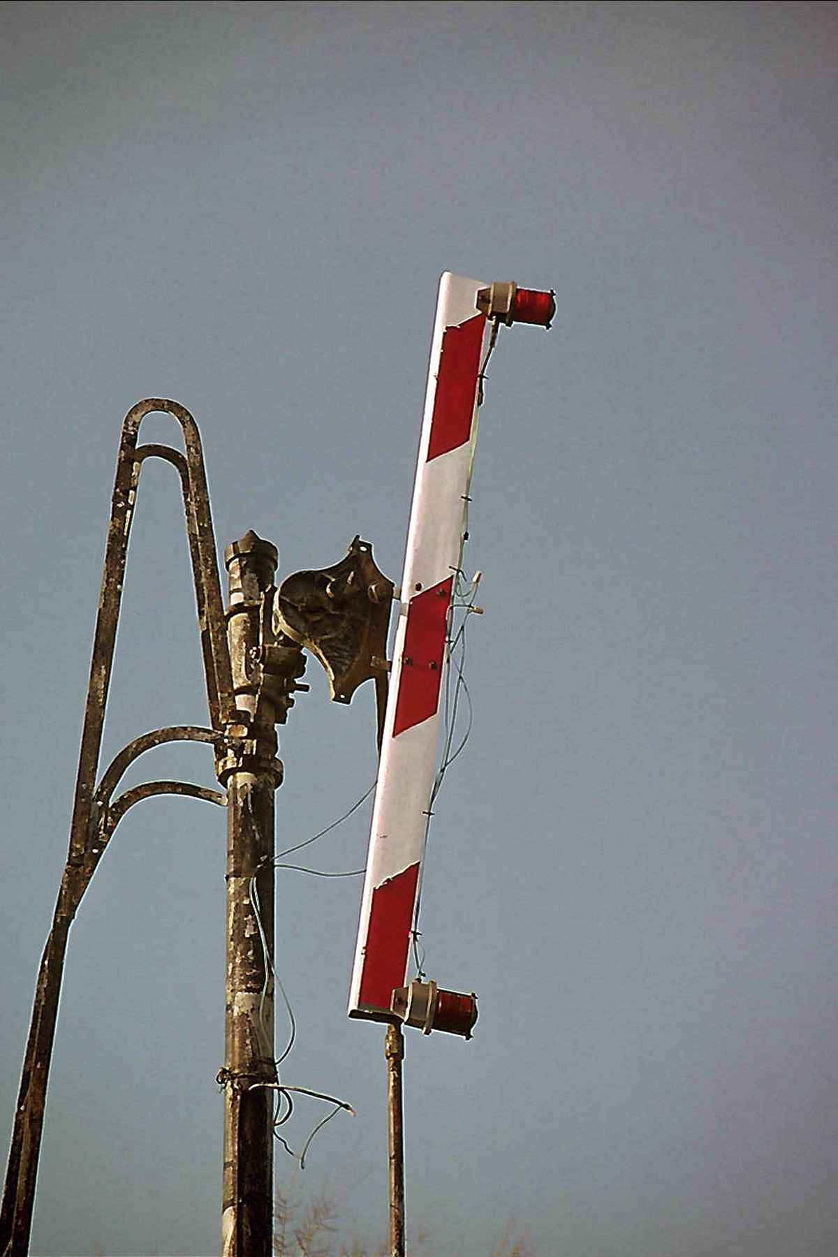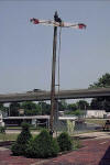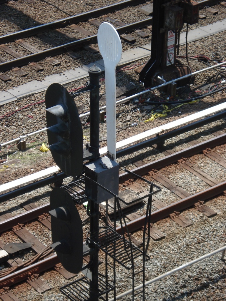 Tilting target signals were used where two railroads crossed each other. The two thumbnails below show the two positions you will see them in, and the engineers of each railroad knew which indication applied to them. As far as I know, they were/are all manually operated, and rarely interfaced into a signal system.