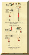 Eric, Thanks for this great bit of history! He has a 1919 edition of the rulebook, and further states: "The aspects are practically the same, except for older terminology (e.g., "Restricting" = "Low Speed Caution", etc), and there are no color light signals!