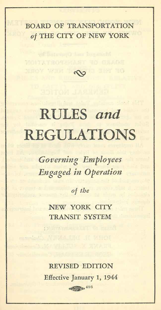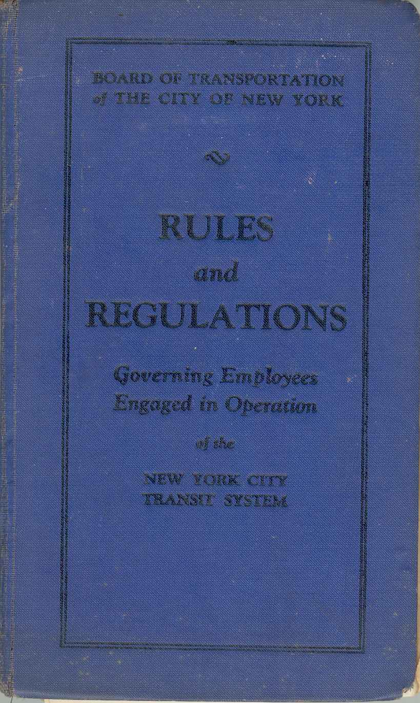 Way back in 1971 or so, my best friend John and I took a trip to New York City for a fun filled weekend on the subways. We stopped by the TA headquarters to get a photo pass, and some nice fellow unloaded a stack of these rulebooks on us.