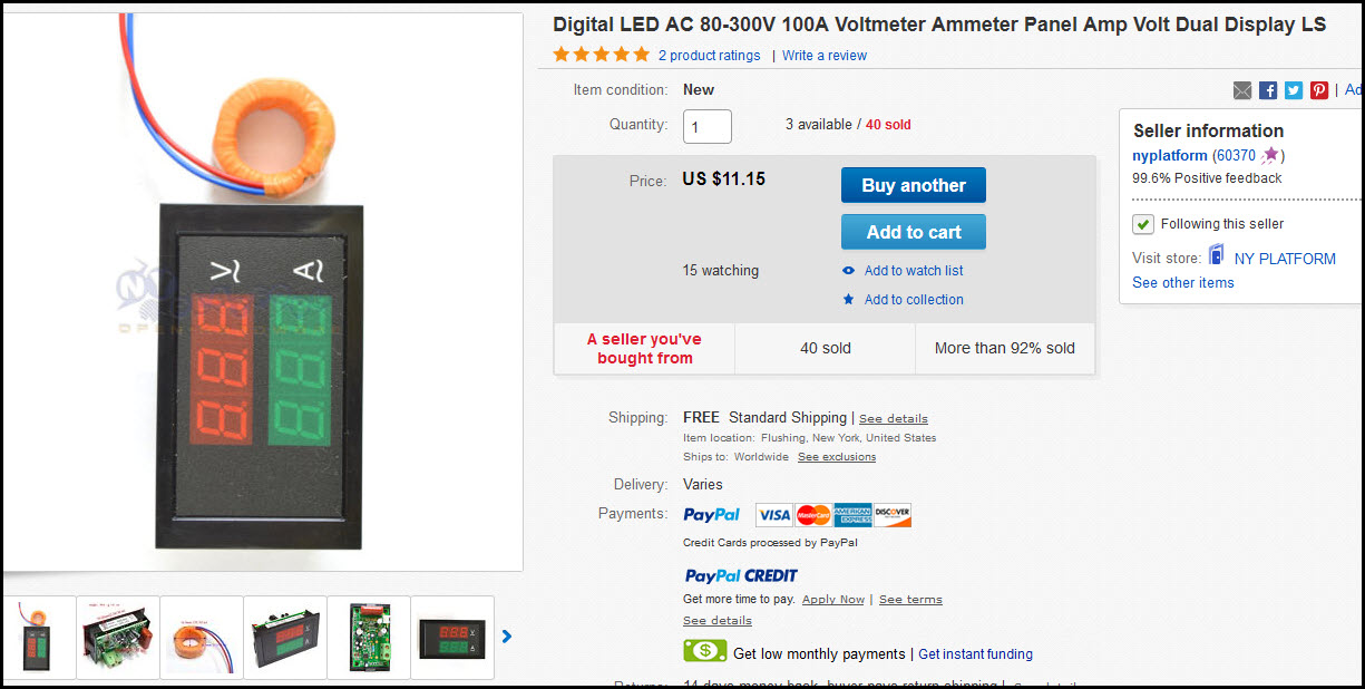 120VAC LED Voltmeter and Current Meter