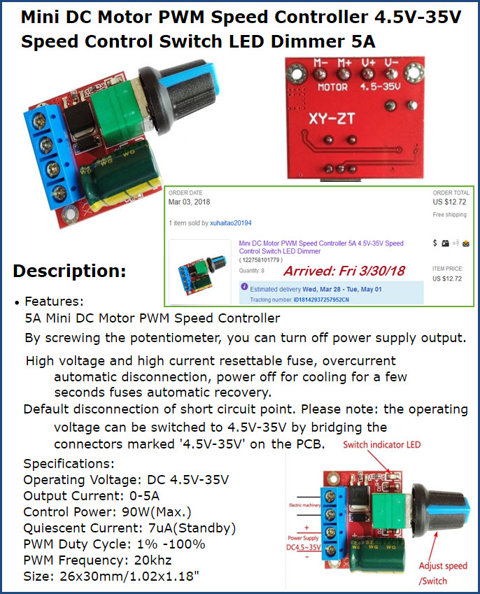 PWM Speed Controller: 5-35VDC, 5A