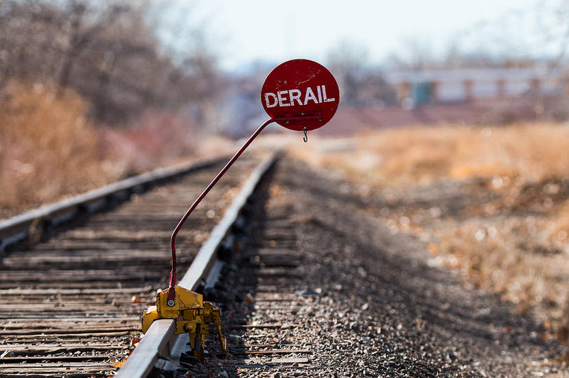 A derail mechanism on the railroad tracks into Old Town, along the Fore River, Portland ME. Found on Flicker.