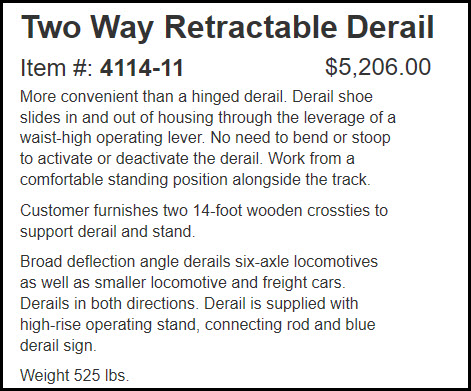 track car shown below. The derail was at the entry point to the main line. Pix from 2005.