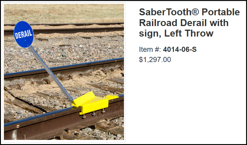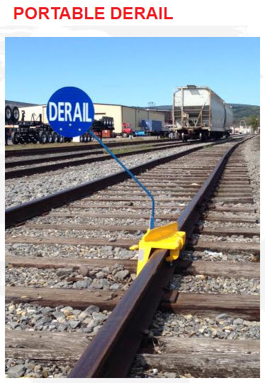 Many derails are permanently installed, others are "portable", such as the one used to protect the mainline in case the DOT car below "gets
