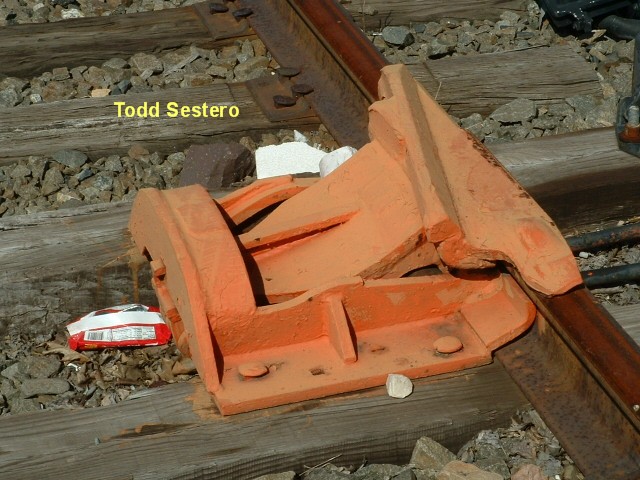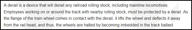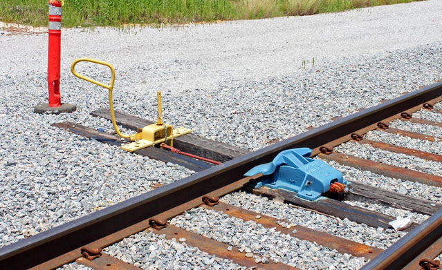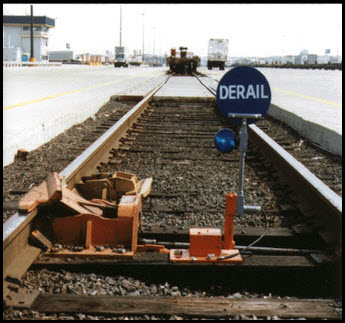 away". The derails in the Manassas yard are typical of permanently installed derails used to protect the mainline in case engines or cars inadvertently