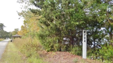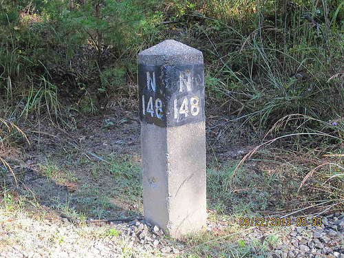 white mileage post just South of the Bentley Springs MDparking lot, indicates