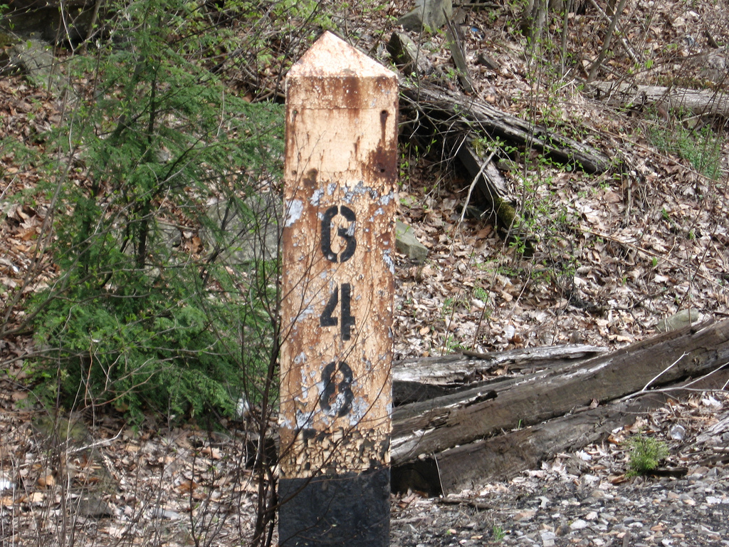 Along the Northern Central Railway trail, another example of a typical Pennsy milepost: