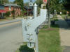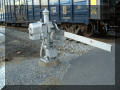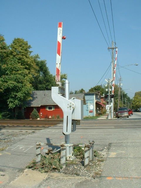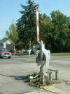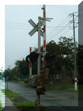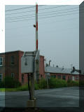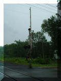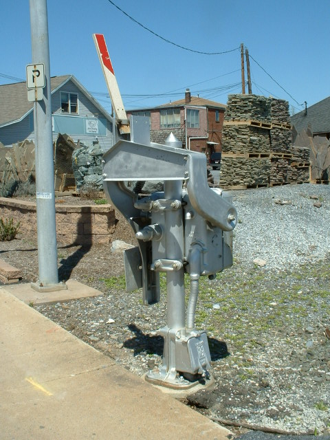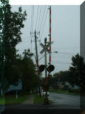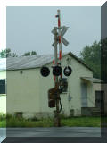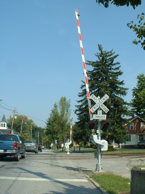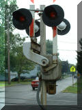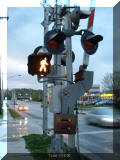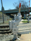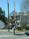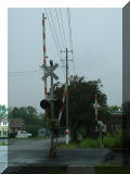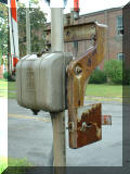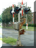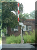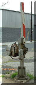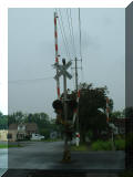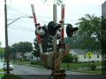 This crossing gate and it's brother are in Darby PA, a southwest suburb of Philadelphia. It protects people from freights on the old B&O, their only track in and out of town to the south. It is on Main St (cross street of N 6th St), not too far off of Island Ave, which is an exit off of I95. You can also see, especially in the streetcar shot, that the trolley tracks cross here too. What a great town! Sorry I didn't get more pix of it, the streetcar was coming for a photo run-by and then we had to get back on.