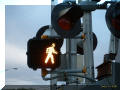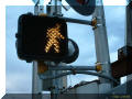 It's a typical "hand-man" signal used in regular traffic light service. For those not familiar with the terminology used with auto type signals, the "hand" and "man" refer to the symbols displayed. The white symbol of a man walking signifies it is OK to walk, an orange hand replaces the traditional "don't walk".